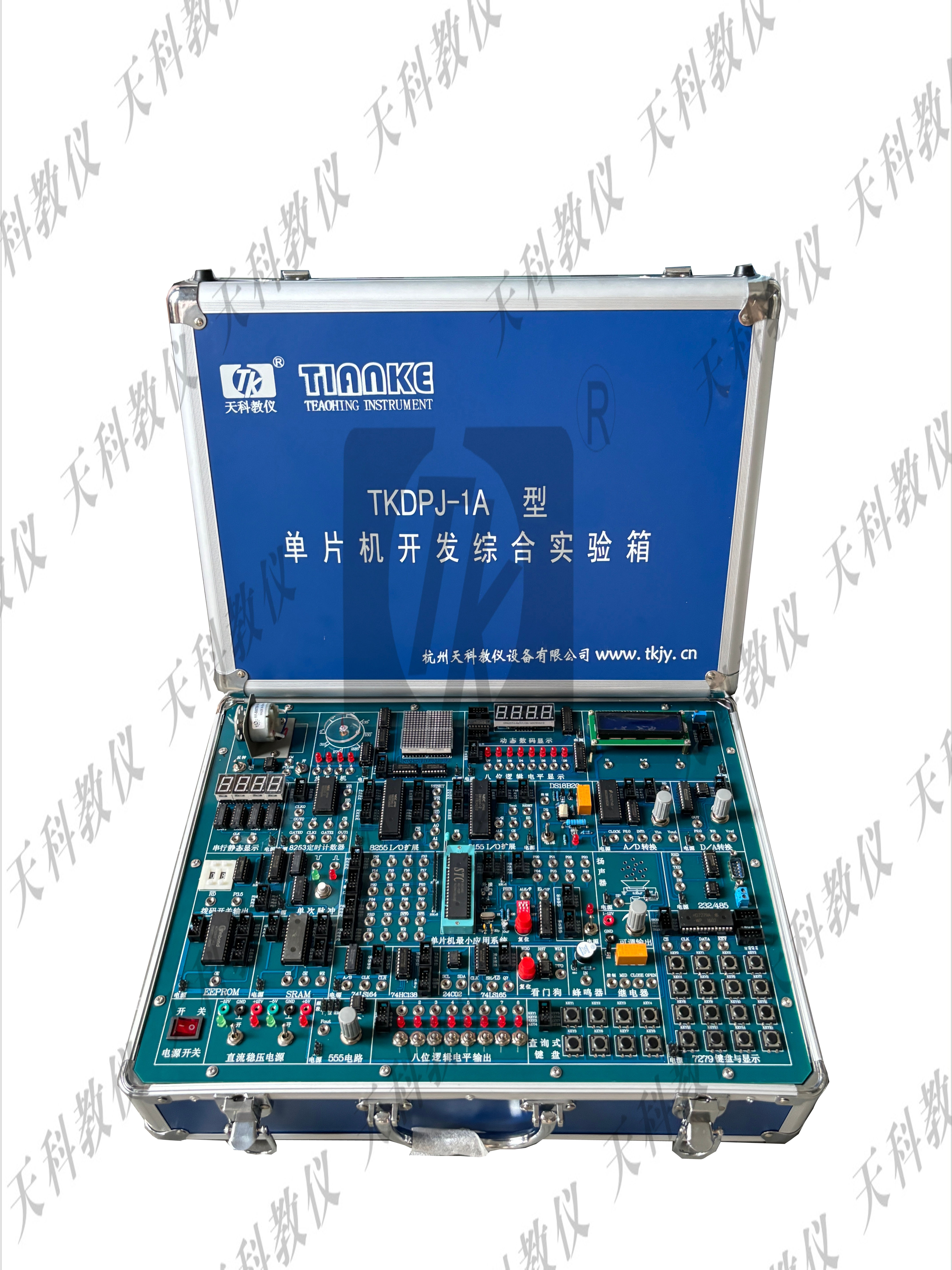 “TKDPJ-1A型单片机开发综合实验箱”集数据采集、显示、通信接口于一体,实验内容涵盖了单片机教材提出的单片机基础实验和开发设计运用实验,适合大中专院校开展单片机教学实验、课程设计及科研开发。实验箱充分考虑实用性、可靠性与安全性,其实验线路连接采用高性能自锁紧接插件实验导线,坚固可靠。实验装置集数据输入输出、采集、显示、通信接口于一体,实验项目涵盖单片机教材提出的单片机基础和开发应用实验,适合技工院校开展单片机实验技师层次教学、课程设计及科研开发。