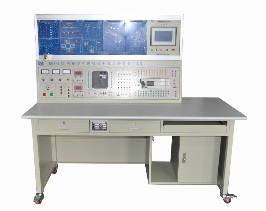 本装置由电源控制屏、实验桌、实验挂箱组成,可以完成《可编程控制器技术》、《可编程控制器及应用》等课程实验及实训项目。本产品集可编程逻辑控制器、通信模块、编程软件、MCGS工控组态软件、模拟控制实验板、实物等于一体。设有符合国家标准的电流型漏电保护器,控制屏若有漏电现象,漏电流超过一定值,即切断电源,对人身安全起到一定的保护,同时设有可靠的接地保护措施。 本装置配置有通讯模块,可以组建局域网,同时可以将触摸屏、智能仪表、变频器系统、伺服系统等挂在通讯网络上,让学生了解工业自动控制发展模式。