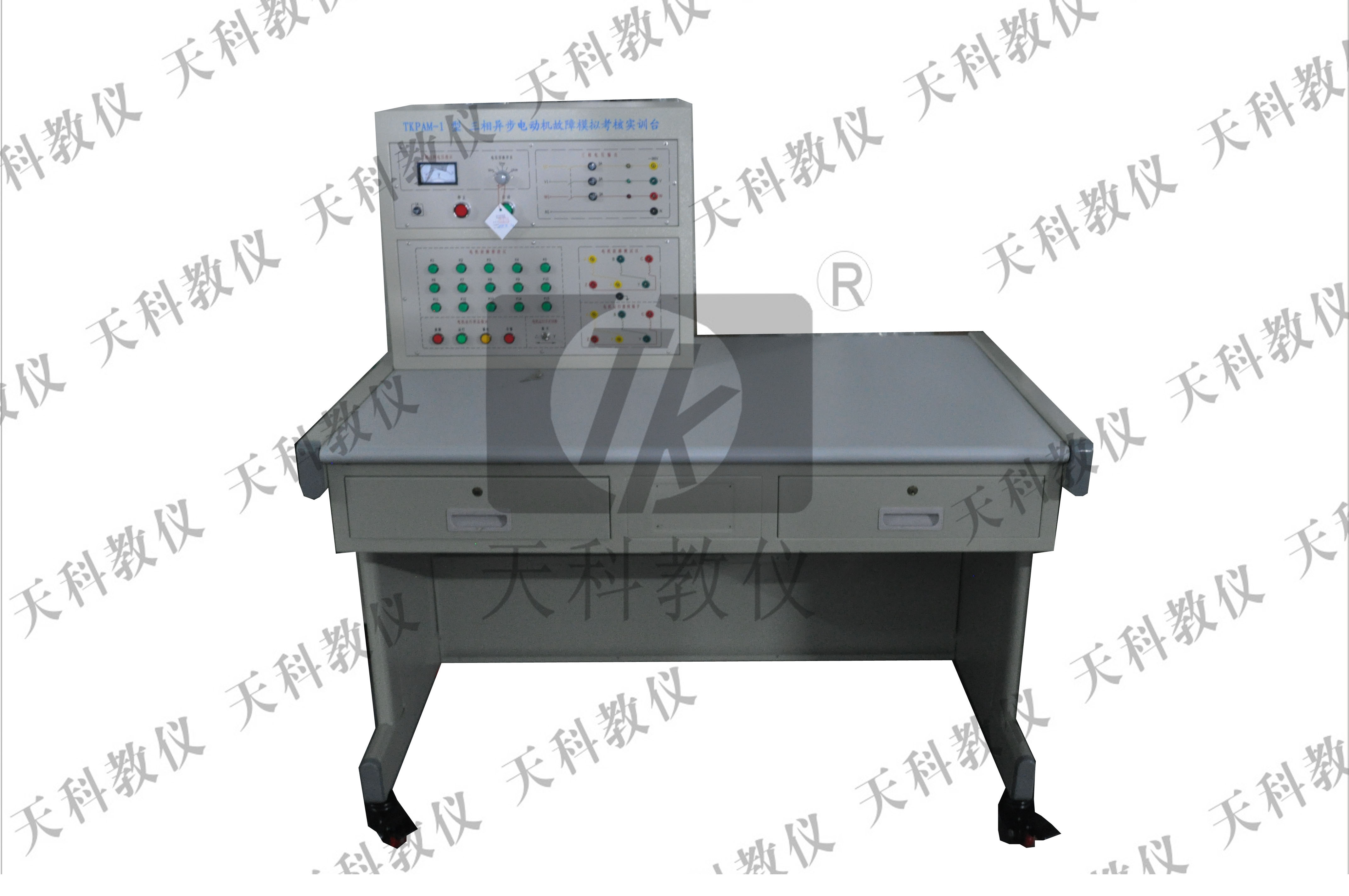 “TKPAM-1型三相异步电动机故障考核实训台”,主要用于三相异步电动机常见故障的检修,可培养学生快速判断、检修、排除三相异步电动机常见故障能力。
